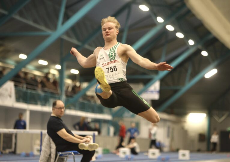 Borgå Akilles Thomas Isaksson förbättrade sitt personliga rekord med 24 centimeter till 655. Det gav honom en bronsmedalj i 22-årsklassen bakom Kasperi Vehmaa och Eelis Kuusjärvi, som bägge hoppade över sju meter.